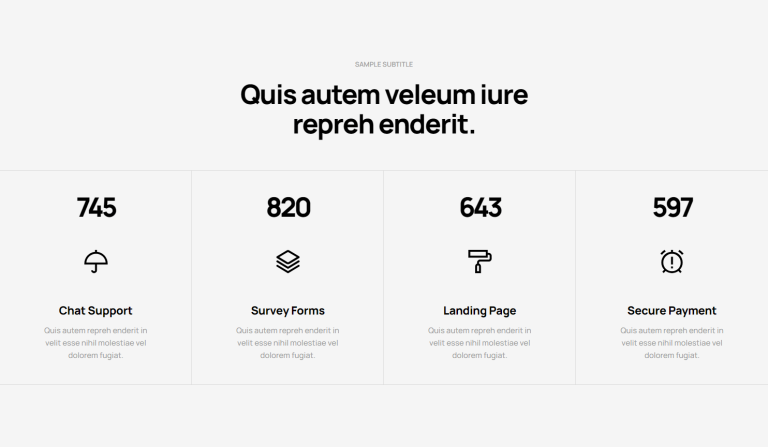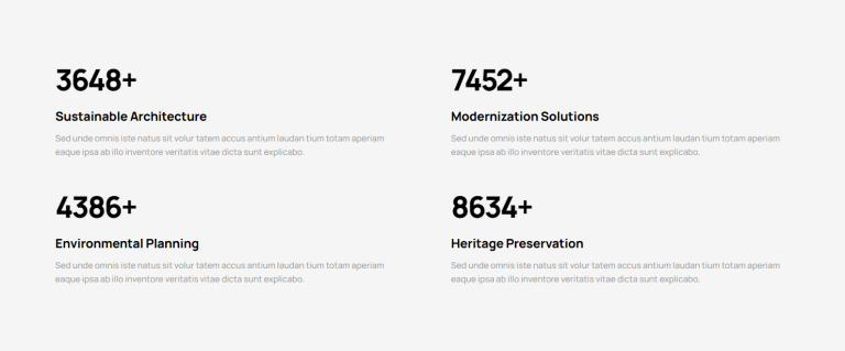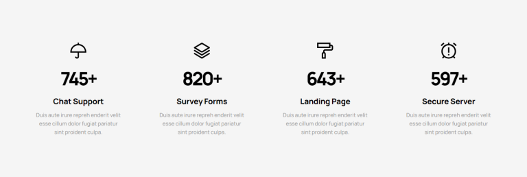 Versatility: Whether you’re showcasing the number of satisfied customers, completed projects, or any other significant metric, our counter sections are versatile enough to suit a wide range of applications.